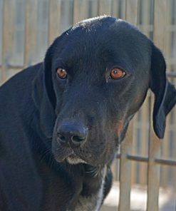 Virtus ist ein wunderschöner, kompakter Rüde, kräftiger gebaut als sein Bruder und leicht kleiner. Sein Fell wirkt auf den ersten Blick fast schwarz, bei genauerem Hinsehen schimmert warmes Dunkelbraun auf Beinen und Schnauze wie dunkle Schokolade. Seine bernsteinfarbenen Augen sind tief, sanft und ausdrucksstark – sie erzählen von Vorsicht, Scheu, aber auch von Neugier und dem Wunsch nach Nähe.