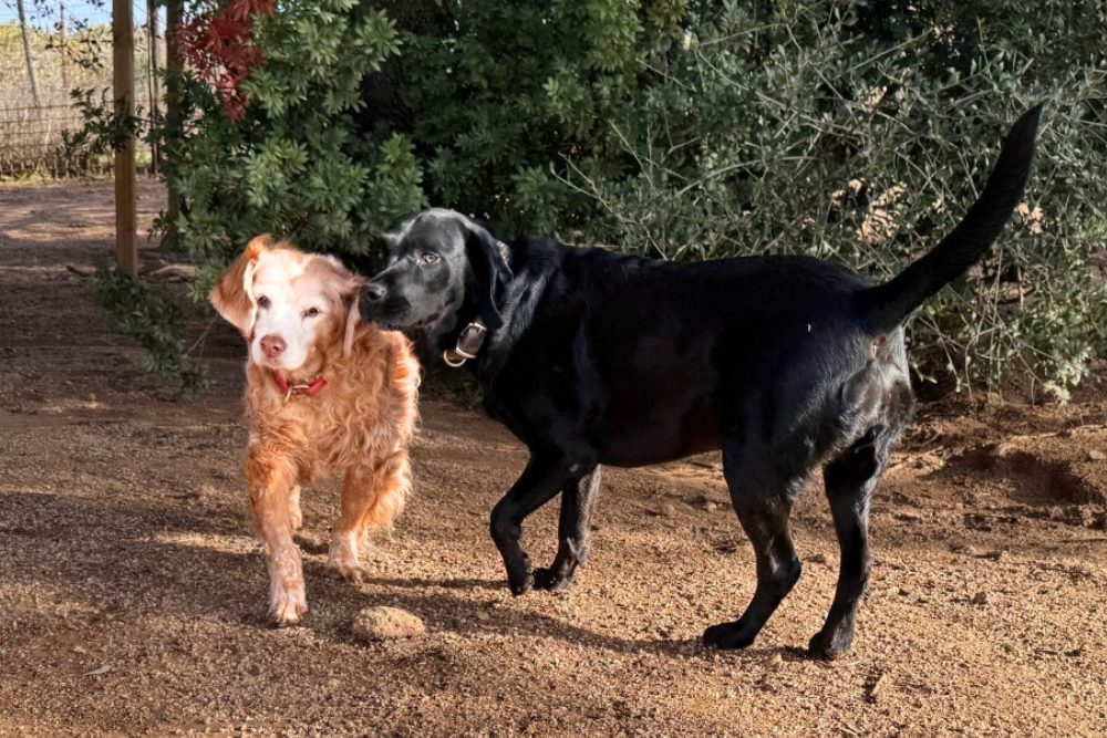 Nach dem Tod ihrer Besitzerin kümmerten sich Nachbarn um die beiden, doch mit dem Winter wurde klar: Sie brauchten wieder ein echtes Zuhause. Wir holten sie zu uns auf den Weinberg – mit der Hoffnung auf einen Neuanfang.